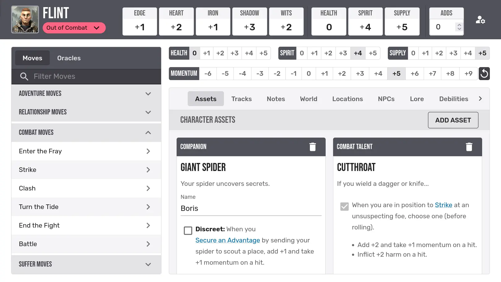 The Foundry VTT implementation of Ironsworn and Starforged has everything you need for your campaign, whether you're playing solo, guided, or co-op. A smooth UI helps you manage your assets and progress tracks, and all the moves and oracles are right at hand. The Foundry ecosystem also has extension modules, including the Ironsmith and Starsmith expansions by Eric Bright.